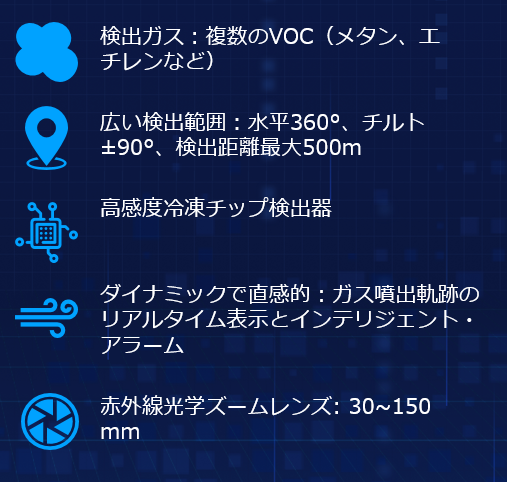 TDLAS防爆型ガス検知カメラ特長![]() | ガスクラウド撮影カメラ特長![]() |